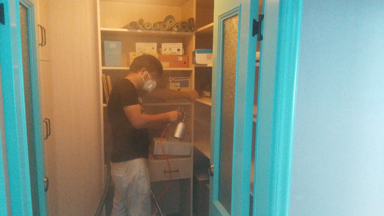 針對其結構特點及污染情況,我公司技術及施工人員采用專項專治的施工方案,針對重點污染區(qū)域,重點治理,例如鞋柜、兒童床、床墊。針對其墻面、沙發(fā)使用我公司研發(fā)的利純光觸媒進行甲醛清除,這些地方光照量較充足,便于光觸媒對甲醛的分解,對于刷漆的家具、書桌、衣柜、木門等采用甲醛清除劑進行處理,針對不同污染物,做分別處理。經過我公司重點治理,一周后復查結果各種有害物質含量均已達到國家標準以內,為業(yè)主清理甲醛,還顧客一個安全,健康的生活環(huán)境是我們全體工作人員的責任,下面為施工現(xiàn)場照片: